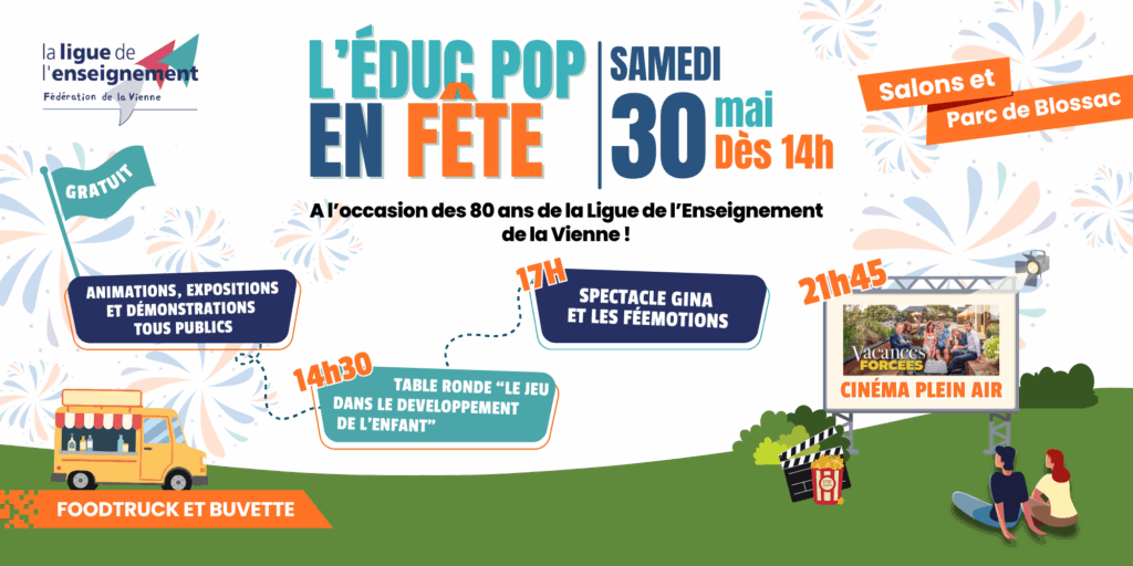 À l’occasion de son 80ème anniversaire, la Ligue de l’Enseignement de la Vienne vous invite à une journée exceptionnelle placée sous le signe du partage, de la culture et de la convivialité. Un événement gratuit et ouvert à tous pour célébrer huit décennies d’engagement en faveur de l’éducation populaire.